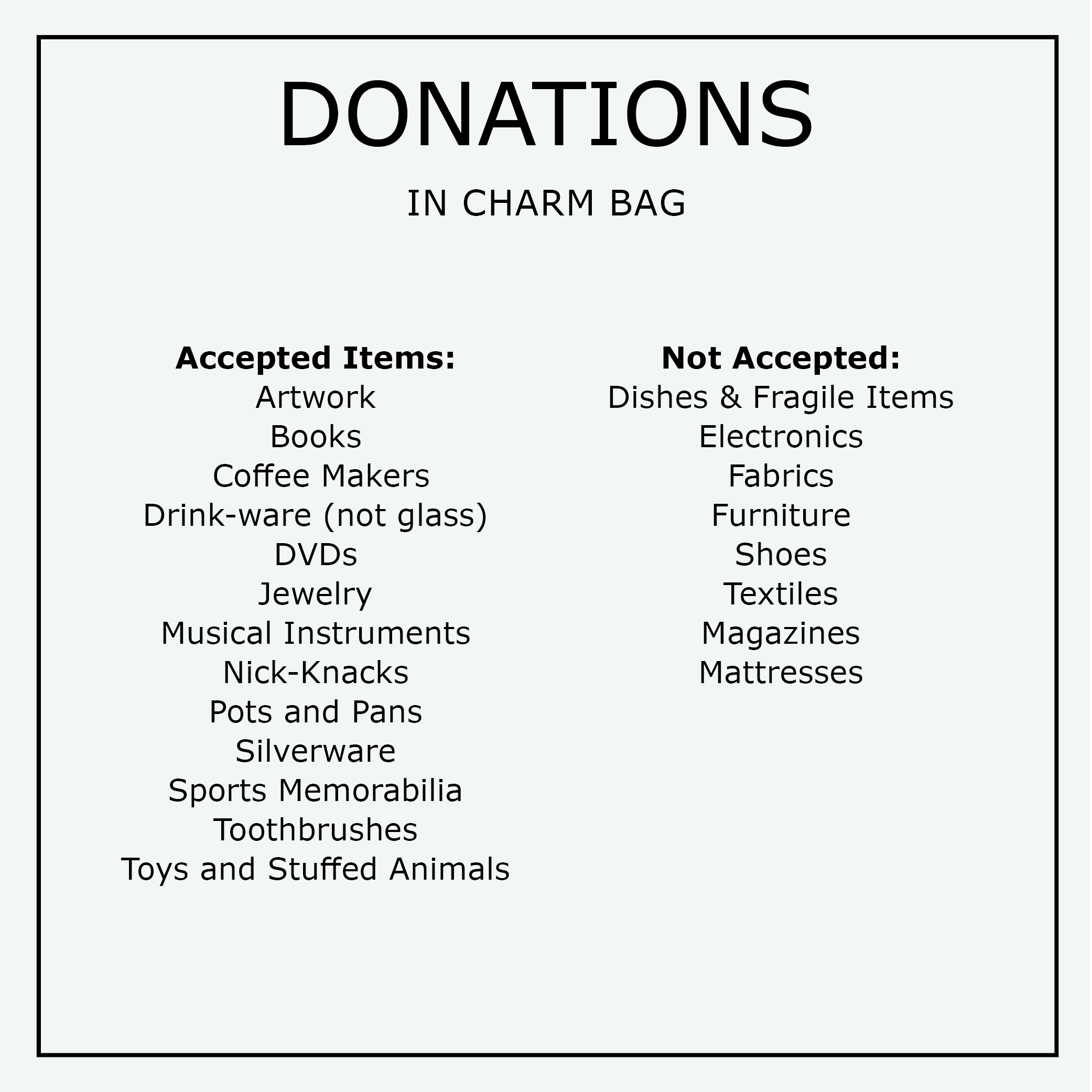 High quality and usable goods are sent to thrifts stores and non profit partners.